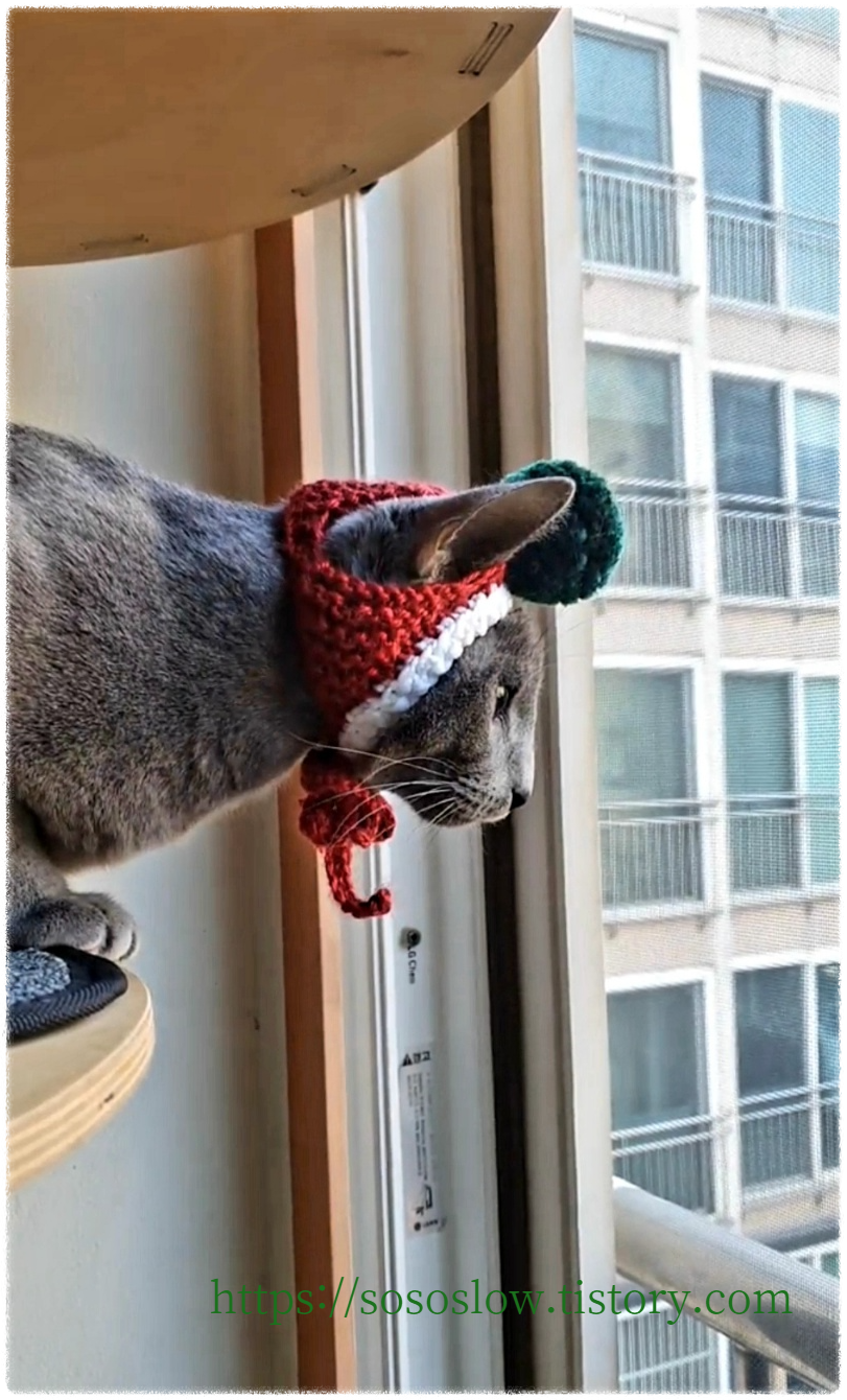 오늘의 미션(?) 과제는 고양이의 작고 예쁜 머리에 방울모자 씌우기입니다.